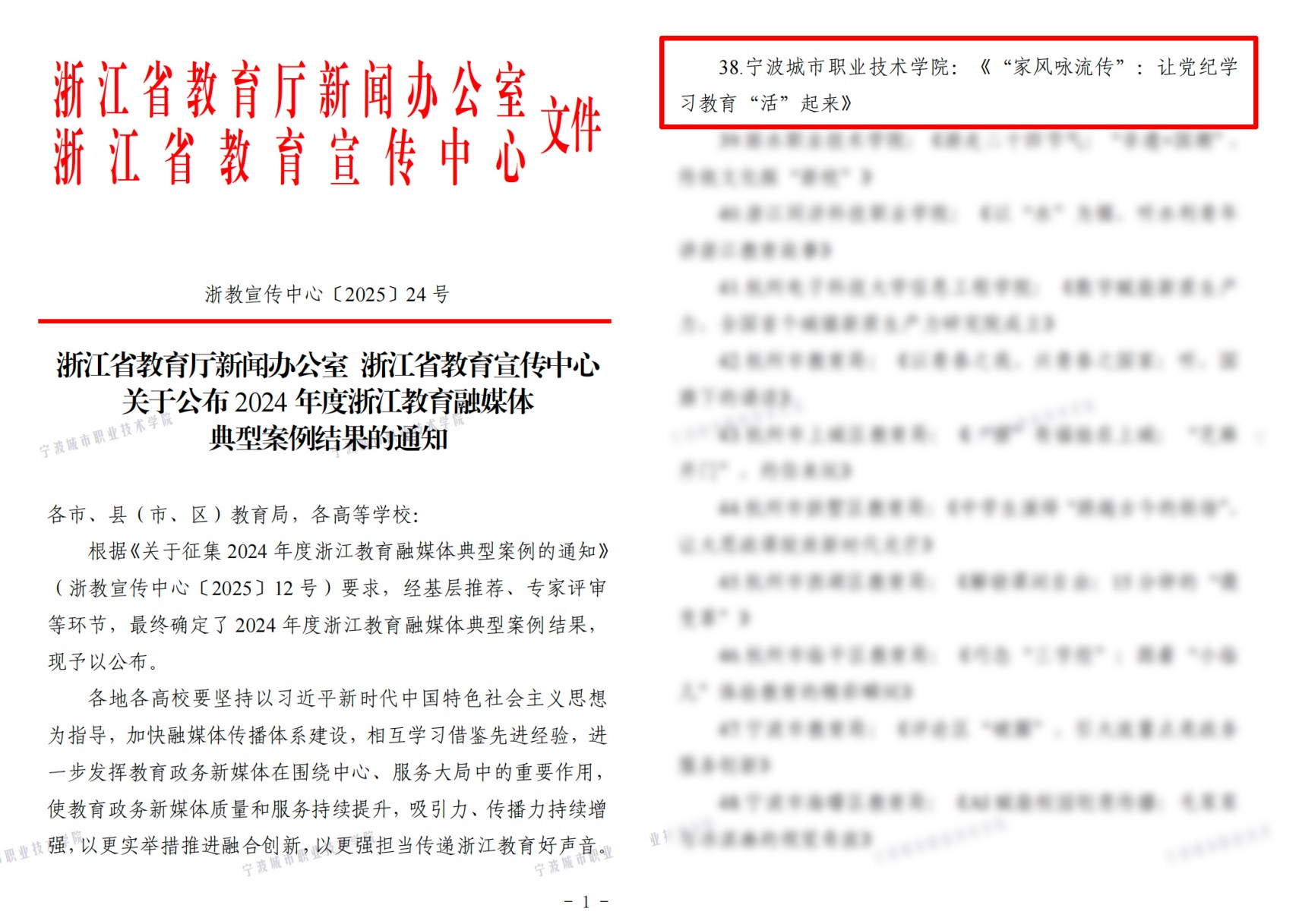 近日,浙江省教育厅办公室、浙江教育报刊总社发文公布了2024年度浙江教育融媒体典型案例名单,kaiyun开云官方在线入口报送的案例《“家风咏流传”:让党纪学习教育“活”起来》成功入选。