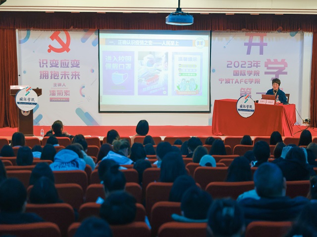 青春校园,春意盎然。3月1日下午,学校党委委员、副院长潘菊素为国际学院师生上“开学第一课”,帮助学生扣好新学期、新征程的第一粒扣子,引导学生树好理想之“旗”,补好精神之“钙”。国际学院党总支副书记吴丽红主持,辅导员及全体学生通过线上线下多种形式参加。
