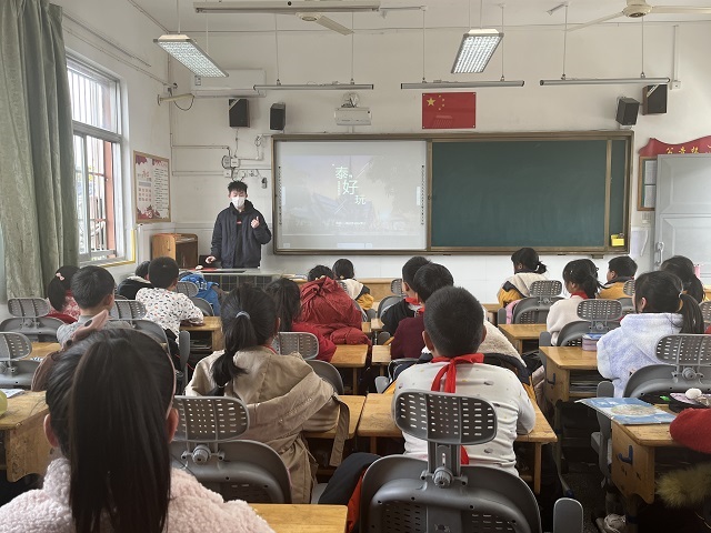 2月28日下午,我校英语社、泰语社及22法语A班团支部组成的“走进泰英法”匠心公益课堂小分队在指导老师的带领下,赴中国工农红军浙江四明山红军小学开展实践教学活动,为孩子们带去了一堂多姿多彩的异国文化体验课,受到师生的热烈欢迎。