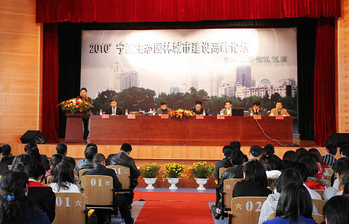 论坛上,宁波甬商发展研究会副会长、宁波市花园园林有限公司董事长张根朗,中南林业科技大学环境艺术设计学院院长、我国著名景观学家沈守云教授分别以“碳汇经济与生态文明”、“公正,权利,选择与园林”为题发表了主旨演讲,为我市生态园林城市建设出谋划策。