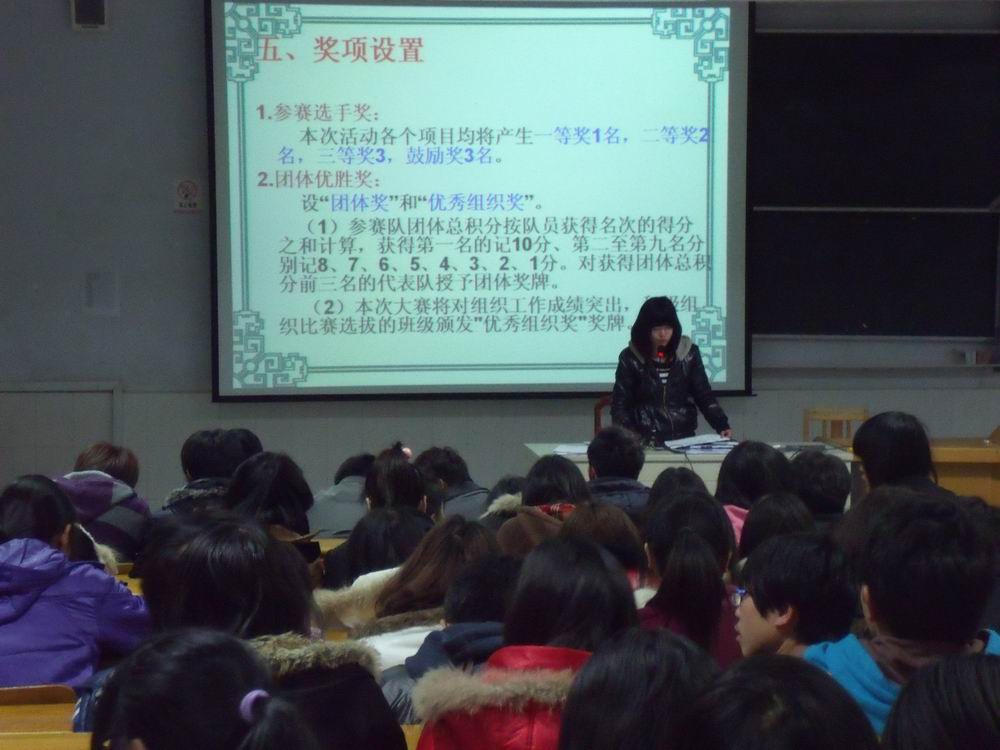 322晚,在学院团总支的指导下,我院社工委在104教室向全院模拟公司管理层干部召开一次关于第六届技能节活动的动员大会。大会由社工委副主席傅飞燕主持,在“好,很好,非常好”的迎接之下,由院团总支主办,社工委承办的技能大赛动员大会正式拉开帷幕。