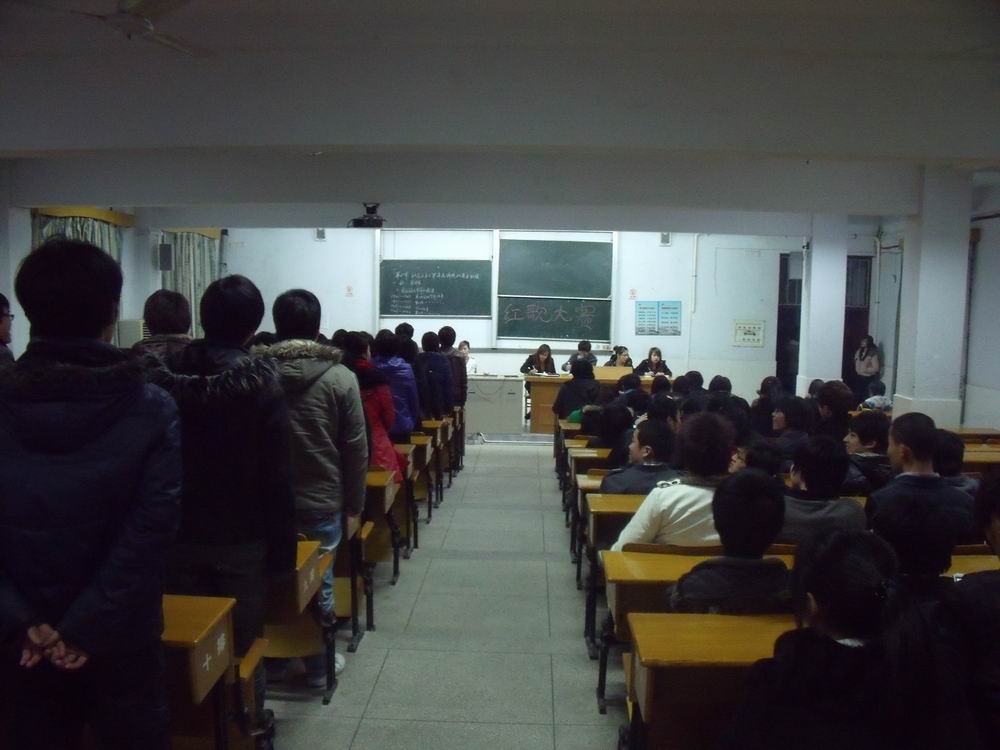 由环境学院团总支主办的分公司每月红歌大赛第二场于2011年3月23日在104教室举行。本次活动共有17个分公司,600多名学生参与。由文艺部发起的唱红歌活动,除了每周一在各分公司自主开展外,每个月还会举办一次以分公司为单位的唱红歌比赛。我院希望通过这个活动,发扬同学们热爱生活,热爱祖国的情怀。