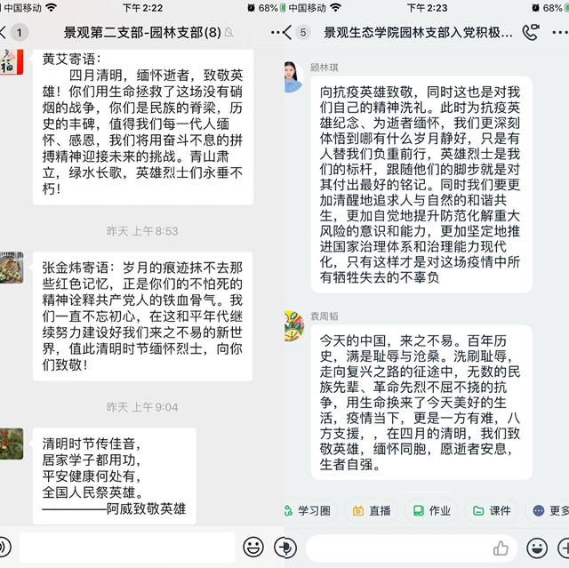 青山埋忠骨,凛然天地间。4月4日,景观生态学院第二党支部全体党员师生和入党积极分子开展网上祭英烈活动,缅怀先烈,寄托哀思。