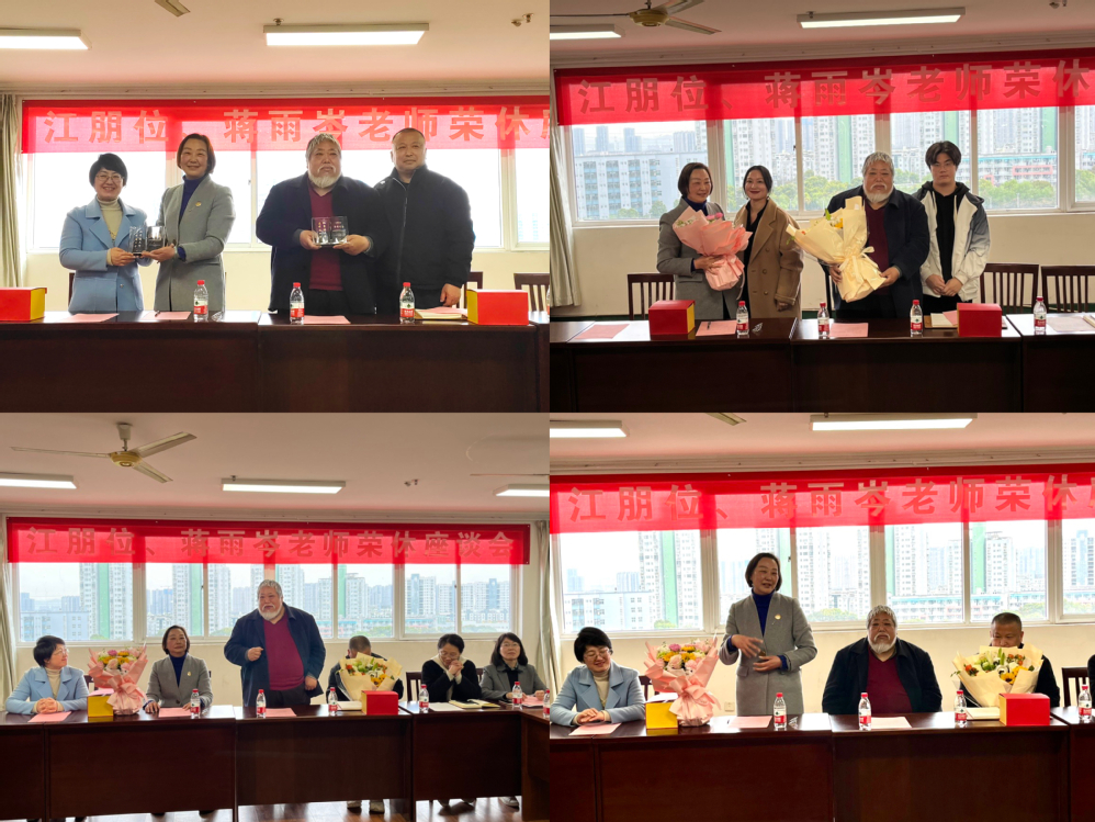 3月29日,马克思主义学院、基础课教学部召开江朋位、蒋雨岑老师荣休座谈会,马克思主义学院、基础课教学部行政人员,素质教育教学部和体育教育教学部任课教师及校友、学生代表参加座谈会。
