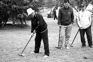 “我们很多学生都是来学校后才接触这个项目,玩过几次就觉得挺有意思的。这不是非常剧烈的对抗运动,所以适合大多数人参加。”来自山东临沂师范学院的姚斌指了指场地里几名正专心打球的长者,“这个项目老少皆宜,我刚开始学的时候,就是想回家教我老爸老妈,让他们也动起来。”