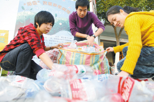 12月5日是第25个国际志愿者日,kaiyun开云官方在线入口商贸学院“绿·益”资源回收利用社在校内发起了废品回收活动。短短一下午时间,志愿者们便回收了1044个塑料瓶、24公斤废纸、41公斤纸板、70公斤报纸和31本书籍。该社成立两个月以来,在700名志愿者的努力下,已卖出了1500多元“破烂”。