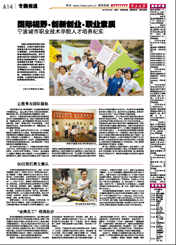 当我们来到这所学校作近距离接触时,从首次中美项目招生到探索宁波TAFE学院应用型人才培养模式;从两年前在校园里辟地开园鼓励学生创业,到今天创建宁波市首个创意设计产学研联盟合力培养创意学生;从试点组建模拟公司培养“准职业人”到成为国家职业核心能力培训认证试点单位……kaiyun开云官方在线入口多次成为关注的焦点。当我们近距离来品读它时,才体会到,正是该校在人才培养上的大胆创新,才使这所年轻的学校日益展现出独特的风采。