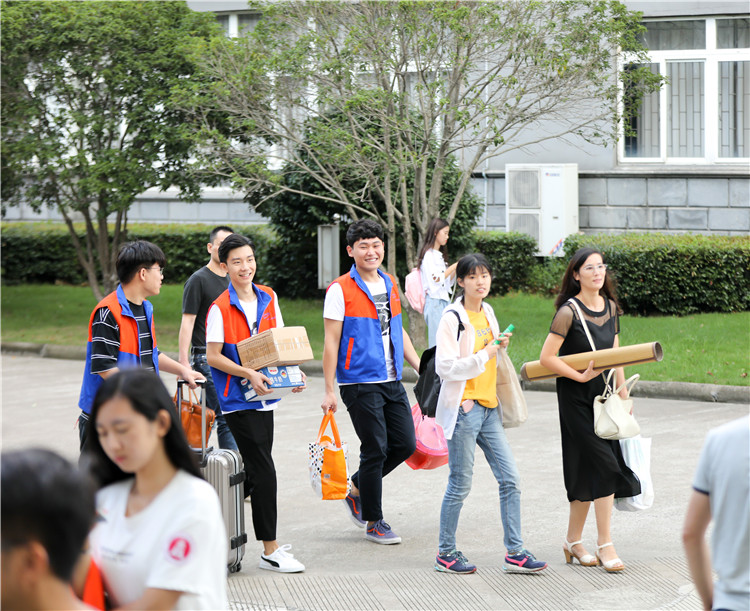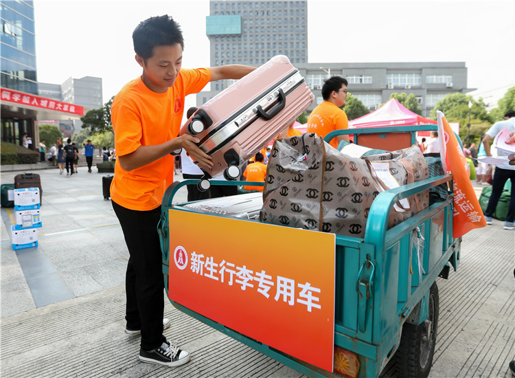 物流管理专业的学长学姐更是发挥专业特色,配备了几辆“小三轮”,新生只需填写一张面单,就可以让志愿者们将大件行李免费送到寝室,简直是一个校园快递站!