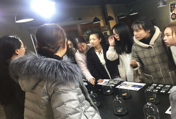 欧泊珠宝设计展展示了张瑾瑜设计师的部分设计手稿以及10余件珠宝作品。精美的珠宝展不仅使学生领略了欧泊宝石的璀璨之美,学习到了关于欧泊珠宝的知识,也深刻的感受到了设计师将一份专注做到极致的匠心精神。