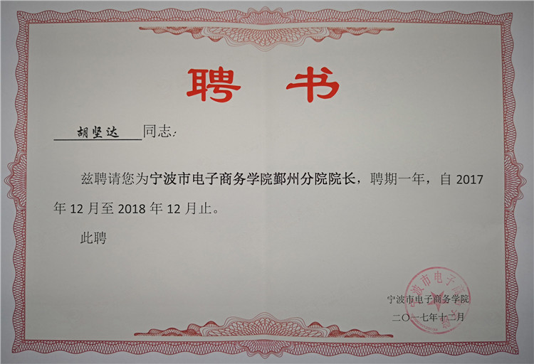 我校因在2017年电商双十一期间与罗蒙集团展开全面合作,为企业提供细致周到的服务,组织得力,成效显著,获市电商双十一优秀组织奖。商学院胡坚达院长出席会议,并被聘任为宁波市电子商务学院鄞州分院院长,立足“城市”;秉承“诚实”;打造“橙师”;以期“成事”,加快电商人才培养,更好服务宁波电商发展。