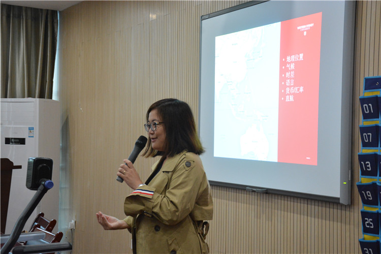 西悉尼大学国际合作项目主任Sylvia Xu女士和西悉尼大学商学院院长Stella向我校师生重点介绍了针对全重点介绍了针对全校学生的“专升硕”通道:我校毕业生通过6个月的MQP学习,就可以直接就读该校的2年商科硕士专业。讲座上西悉尼大学先进的教学设施和丰富的留学生活引起了学生和家长的极大兴趣,讲座后学生和家长积极与宣讲教师进行了互动交流,气氛热烈。