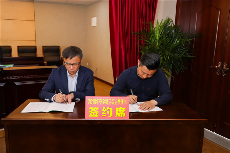 首先,周国明书记代表学校与二级学院负责人签订2018年安全稳定综治工作目标管理责任书。