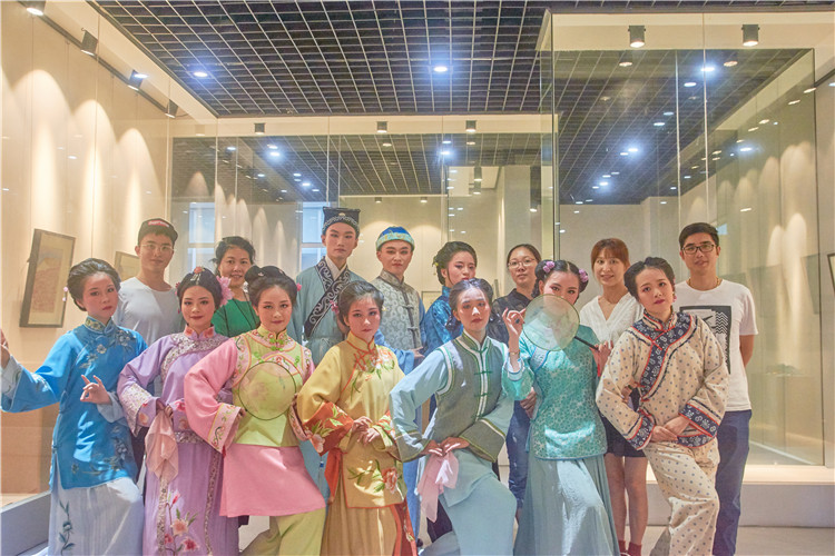 甬剧表演团队与艺术学院工作室学生、校戏曲社成员合影留念