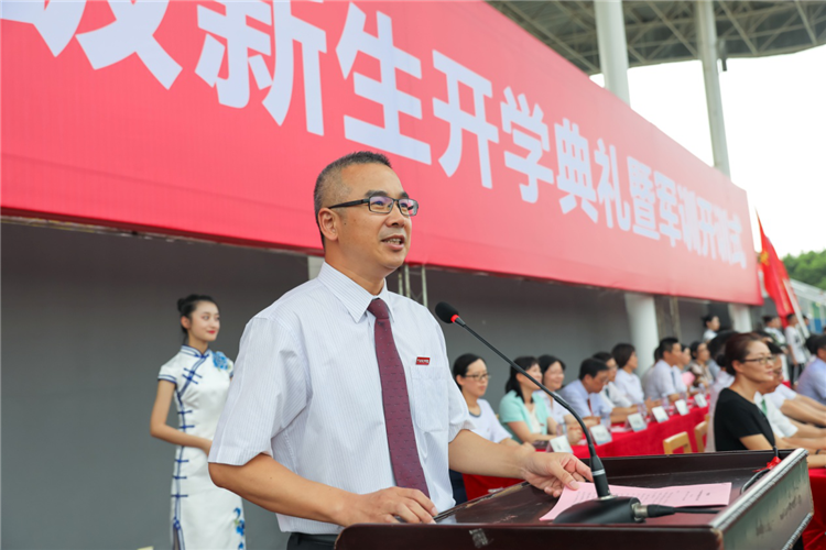 典礼仪式上,教师代表张庆伟,在校生代表徐怡慧,新生代表何伟,教官代表张夏瑞锦分别发言。
