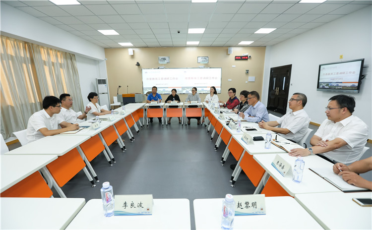 在随后的调研工作会上,党委书记周国明就学校“四严四精”专项行动、党建和思想政治工作、巡察整改情况、今年的三项重点工作等进行了汇报。院长史习明就我校人才培养理念、大学生思想政治教育、教育现代化实践等工作作了汇报。