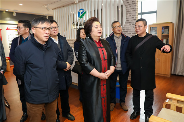 张爱琴一行实地考察了由我校旅游学院牵头成立的“宁波旅游人才交流中心”、“金牌导游大师工作室”等产业服务平台。在宁波旅游人才交流中心,张爱琴对学校服务文化旅游产业取得的成绩表示肯定。