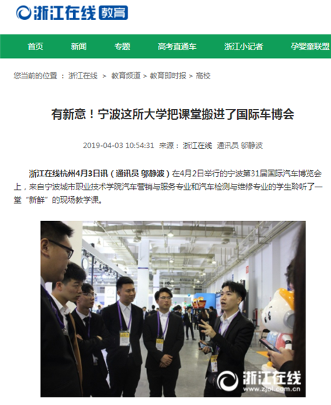 浙江在线杭州4月3日讯(通讯员 邬静波)在4月2日举行的宁波第31届国际汽车博览会上,来自kaiyun开云官方在线入口汽车营销与服务专业和汽车检测与维修专业的学生聆听了一堂“新鲜”的现场教学课。