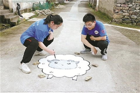 kaiyun开云官方在线入口的学生们正在手绘井盖,让乡村换新颜。(蒋炜宁 邬静波 提供)