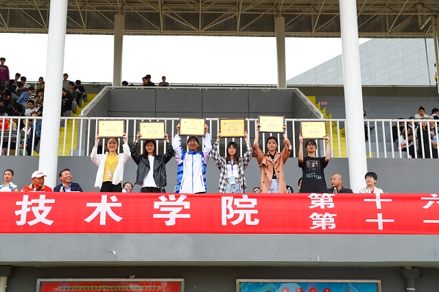 运动会上,我校运动员奋勇拼搏,在赛场上充分展现了“城院人”的风采,女子组共有10人打破记录,男子组共有7人打破记录。信息与智能工程学院、旅游学院、商学院、艺术学院等4个单位荣获“道德风尚奖”;郭仙红等24人荣获“优秀运动员”称号;郑阳等38人荣获“优秀裁判员”称号;商学院代表队、景观生态学院代表队、旅游学院代表队荣获田径运动会团体前三名;机关分工会、思政部/基础分工会、商学院分工会、成教图信后勤分工会、信息与智能工程学院分工会、景观生态学院分工会团体、国际学院分工会、艺术学院分工会荣获教职工运动会团体前八名。
