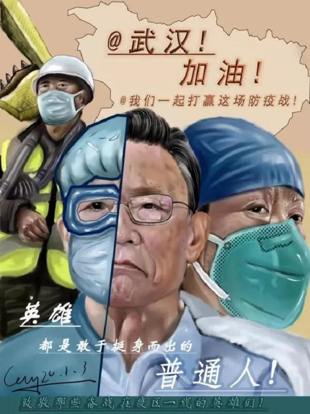 “正如钟南山院士所言,武汉是一个英雄城市。我觉得中国从来不缺英雄,不管是非典、地震,还是这次的病毒,所有冲在一线的人们都值得我们感激、铭记。而这次疫情更让我看到了我们民族的团结和强大。”吴明阳的作品似乎传递着,无论建设火神山的建筑工人也好,治病救人的医护人员也好,都是普通人。