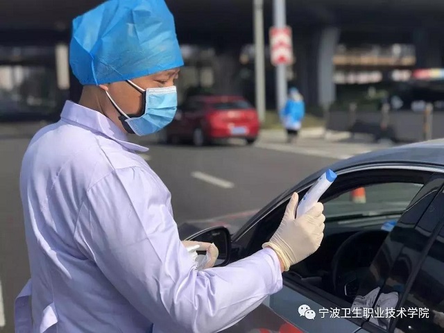 1月31日上午8时,在宁波高速东入口、宁波高速段塘入口,宁波卫生职业技术学院首批14位教师党员志愿者穿防护衣,戴口罩、手套、帽子,手持额温枪,正有条不紊地对出站车辆人员进行检查,1月30日晚,接市委组织部通知后,学院发挥专业优势,开展招募活动,至8时,就有 63位党员报名。