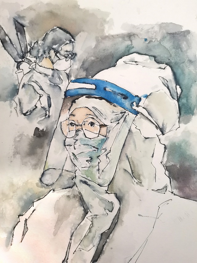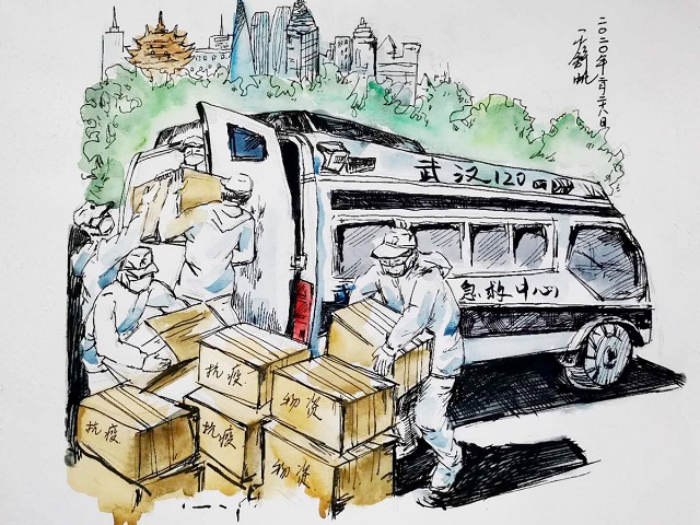 该校艺术学院将“战疫”主题融入到专业课程,人人参与,用艺术创作的方式将这段特殊的历史铭刻在画纸上,以此讴歌可敬的医护工作者、解放军指战员、人民警察、后勤保障人员和社会各界人士的无私奉献和担当,向最美逆行者致敬。