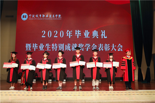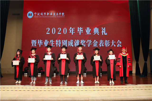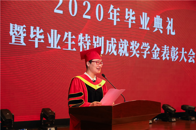 典礼上,校领导为毕业生代表拨穗正冠、颁发证书,副院长潘菊素宣读了2020届省级、校级优秀毕业生名单、毕业生特别成就奖学金获得者名单,党委书记周国明、纪委书记徐建春、副院长严新乔分别为获奖代表颁发证书。