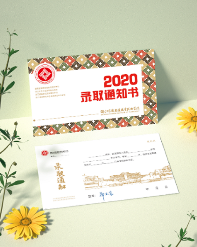 浙江工商职业技术学院的录取通知书以红色为主色调,饰以传统纹样,洋溢着浓浓的中国味道和喜庆气息。
