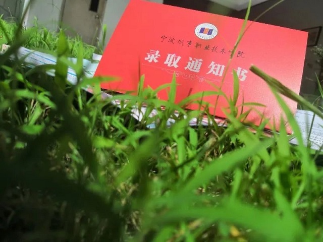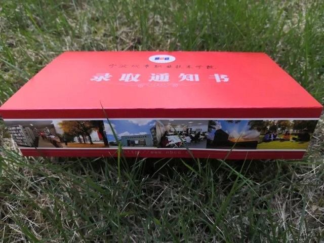 宁波幼儿师范高等专科学校的录取通知书,颜色以中国红为主,哑金色为辅,向考生传递祝贺、欢迎的愉悦信息。
