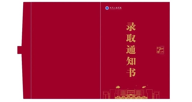 今年宁工的录取通知书延用红色的主色调,火红的基色搭配烫金的文字,典雅复古,让人“一见倾心”。