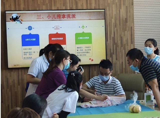 出发前,鲍医生了解到延边州医院亟需小儿中医保健、中医疗法等技术支持,所以将绿色疗法——小儿推拿送到了当地医院。在走访延吉市中医医院、延吉市进学社区卫生服务中心等医院后,考虑到当地开展小儿推拿进度不一,便作讲座,从技术提升、科室管理等多个层面介绍了这项绿色疗法。并就具体问题,给予耐心解答和现场演示。