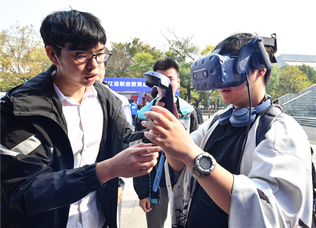 当天还举行了职业教育“提质培优赋能”高峰论坛和浙江省职业教育成果展,kaiyun开云官方在线入口和宁波三所中职学校的学生在技能大师的指导下展示了基于VR视界的计算机组装、插花、盆景制作、面点制作等技艺。