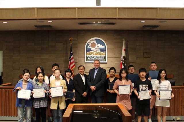 美国瓦卡维尔市市长接见我校赴美国文化交流学生