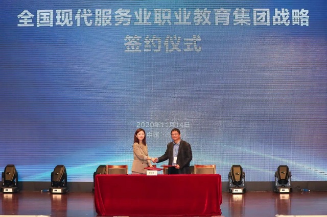 当天,颁发了新发展的副理事长单位和常务理事单位聘书,成立了全国现代服务业职教集团产教融合专委会,全国现代服务业职教集团与企业签署了战略协议,表彰了职教集团2020年年会相关活动获奖者。