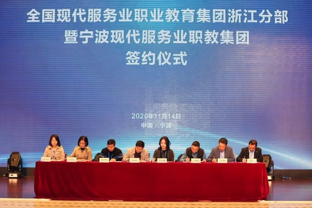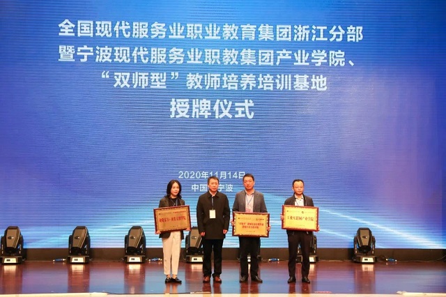 11月14日,全国现代服务业职业教育集团2020年年会暨职业教育高水平发展论坛在我校举行,全国现代服务业职教集团理事长、中国国际商会商业行业商会会长曾亚非、全国现代服务业职教集团执行理事长、江苏经贸职业技术学院校长薛茂云、宁波市教育局高教处处长王勇、吉林电子信息职业技术学院党委书记李雁冰、广东科贸职业学院校长李志伟及来自行业、企业、职业院校等全国现代服务业职教集团和宁波现代服务业职教集团成员单位的200余名代表参加会议。会上,我校与行业企业共建工业互联网产业学院、视觉东方 贝发文创学院和汇绿园林“双师型”教师培养培训基地。