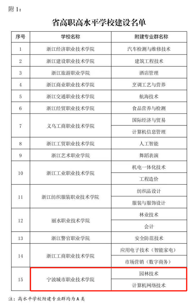 日前,根据省教育厅、省财政厅《关于组织开展高水平职业院校和专业(群)建设工作的通知》(浙教职成〔2020〕45号)精神,经认真组织遴选并报省政府同意,确定15所高职院校、50所中职学校为省高水平职业院校建设单位,30个高职专业群、150个中职专业为省高水平专业(群)建设单位。我校被确定为省高职高水平学校建设单位。