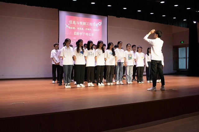 为庆祝中国共产党成立100周年,弘扬爱国精神,重温红色经典,6月7日,信息与智能工程学院举行“E港学子唱红歌”比赛。学院党总支副书记、全体学工办辅导员出席本次比赛并担任评委。本次唱红歌活动,以“唱红歌、颂党恩、抒情怀、强素质”为主题,经过前期排练与选拔,共有9个班级进入决赛。
