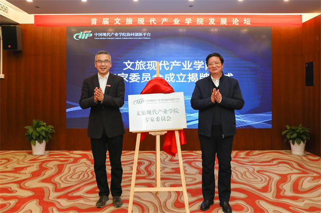 现场揭牌成立了文旅现代产业学院,以及文旅现代产业学院专家委员会。中国现代产业学院协同创新平台常务副理事长中国职业技术教育学会副会长苏志刚和kaiyun开云官方在线入口院长史习明共同为中国现代产业学院协同创新平台“文旅现代产业学院专家委员会”揭牌。