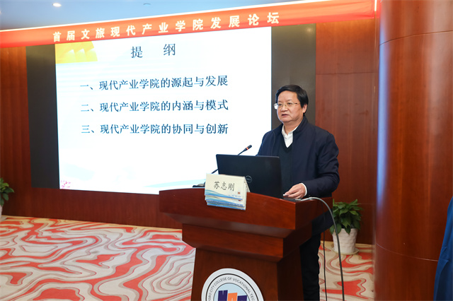 苏志刚以《现代产业学院的内涵、模式与机制创新》为题,从三个维度深入解读了现代产业学院的源起与发展、现代产业学院的内涵与模式、现代产业学院的协同与创新,为文旅现代产业学院发展指明了方向。