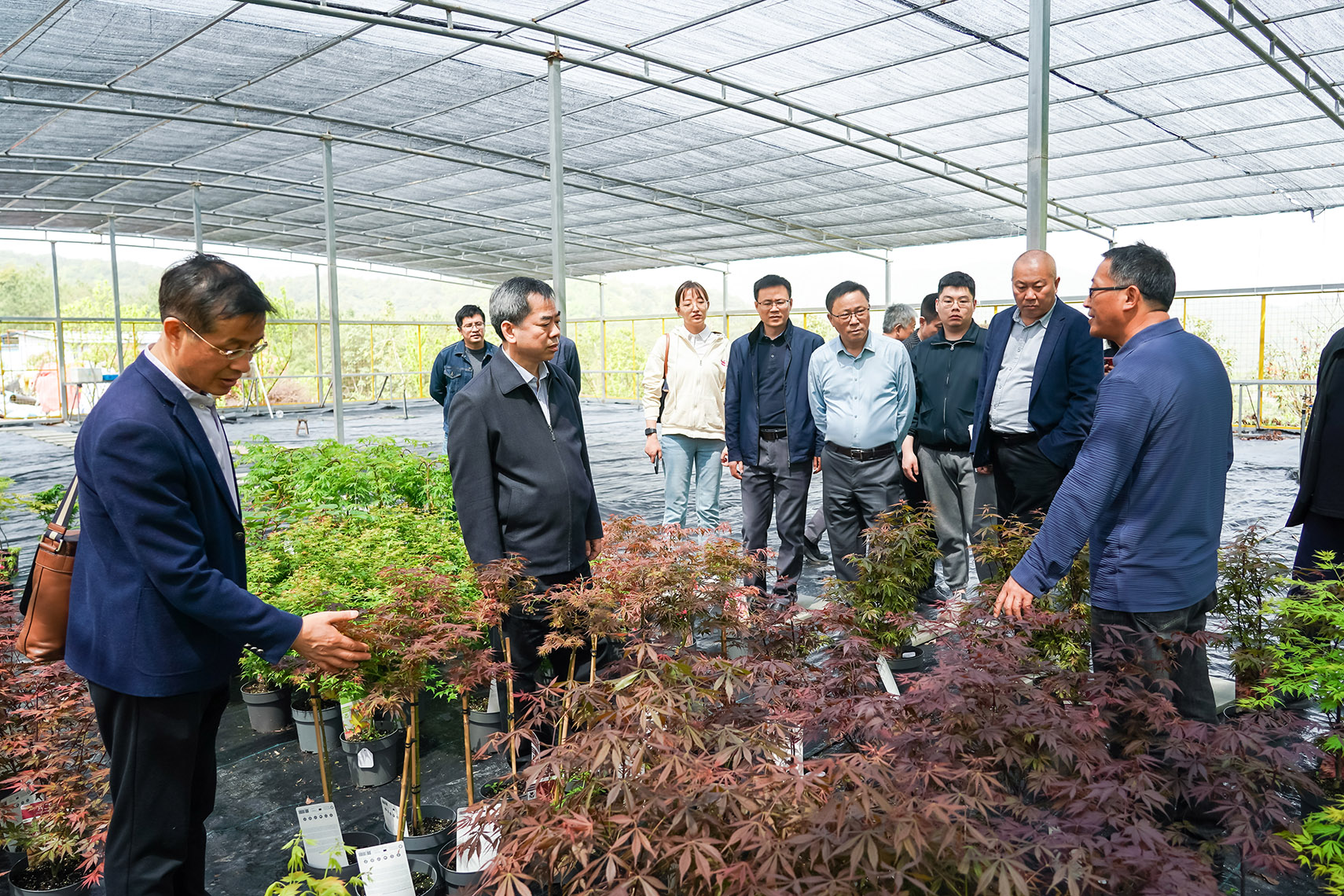调研组走进园艺设施大棚了解槭树新品种培育情况