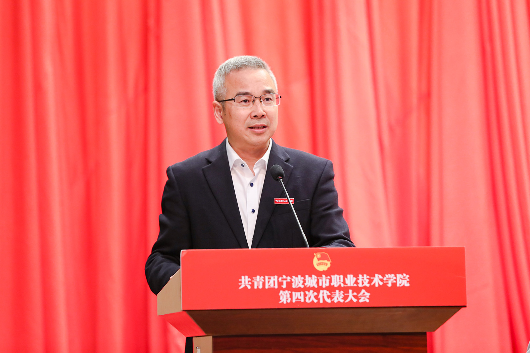 4月26日下午,共青团kaiyun开云官方在线入口第四次代表大会在学校综合楼礼堂开幕,校长史习明,共青团宁波市委副书记张军分别代表学校党委和团市委出席大会并讲话。王春潮、潘菊素、黄炜等校领导,办公室、组织部、宣传部、学工部、工会等相关部门负责人,各二级学院党总支书记、副书记参加开幕式。全校123名团代会代表洋溢着青春朝气,共同见证了大会的胜利召开。