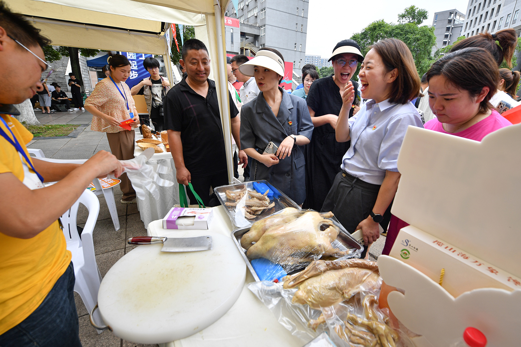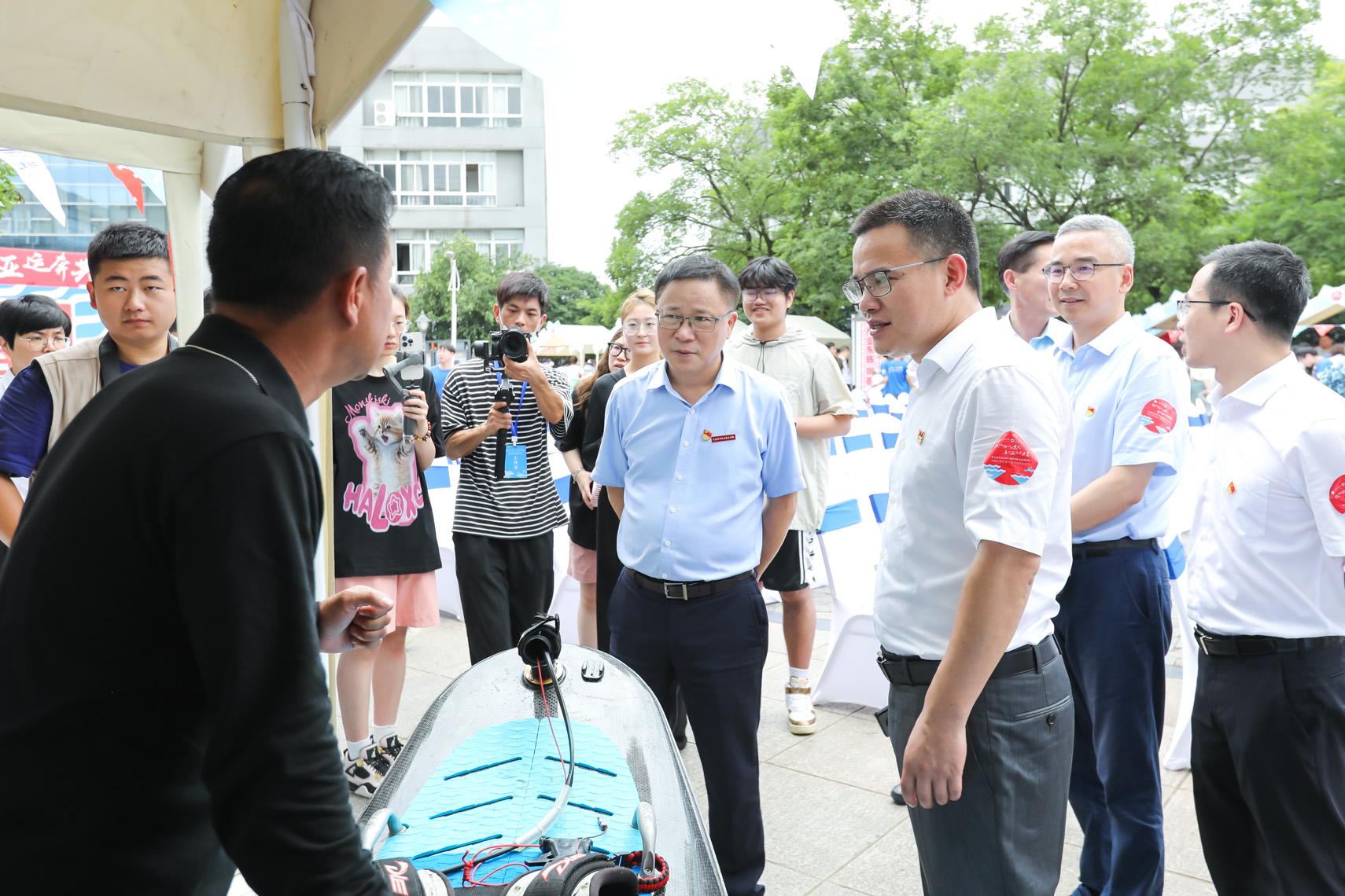 校地双方领导走进共富集市参观喜迎亚运“动力冲浪”项目