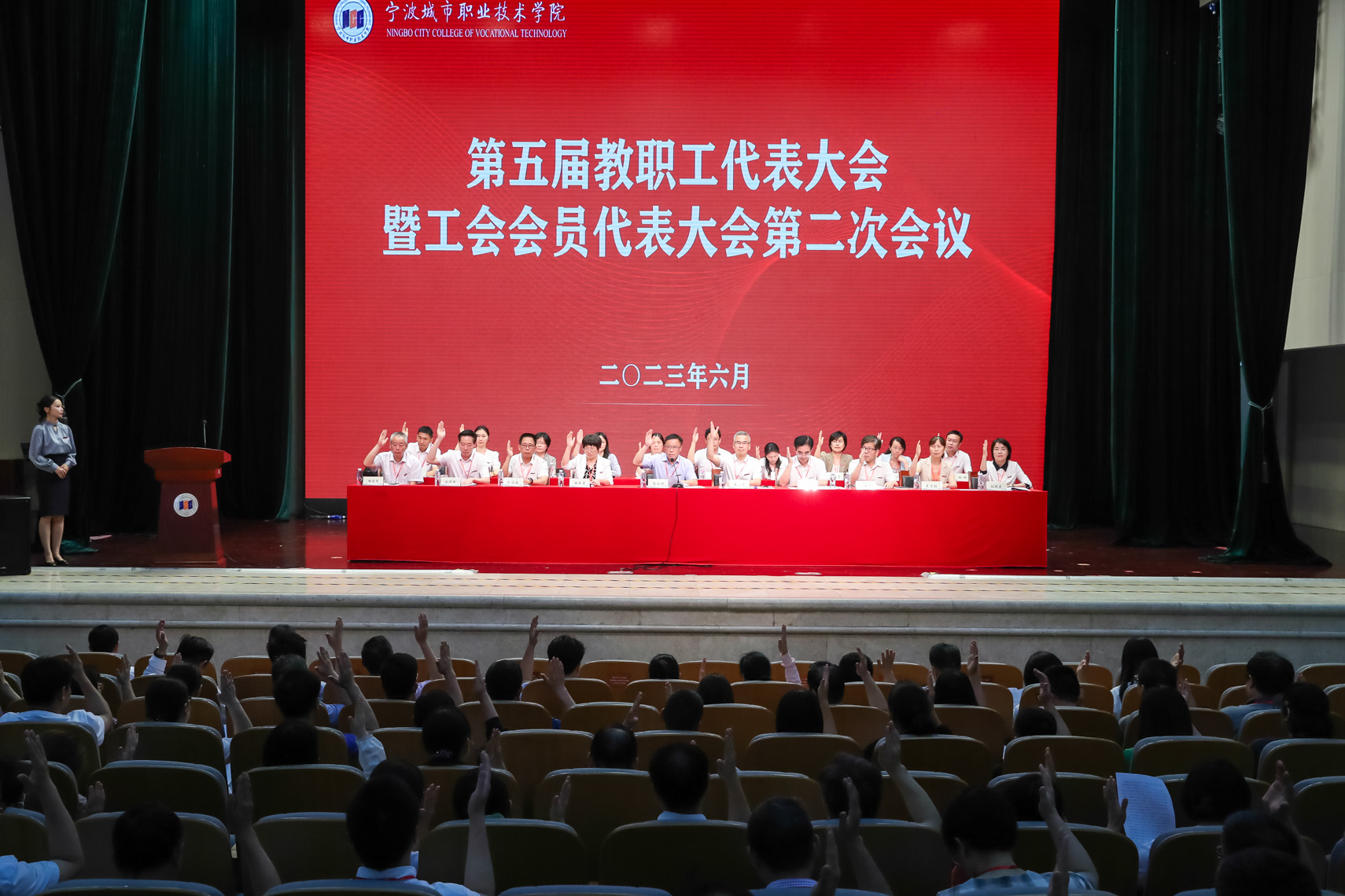 6月28日下午,宁波城市职院第五届教职工代表大会暨工会会员代表大会第二次会议在综合楼礼堂召开。参加本次会议的正式代表97人,列席代表29人。