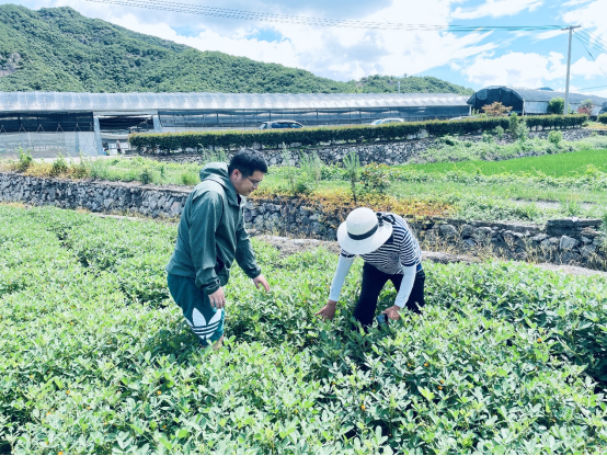 眼下正是黑花生收获的好时节。在象山县“最美西海岸”蟹钳港畔的新桥镇海台村的黑花生地里,经常会看到一个戴着眼镜,文质彬彬的小伙正在太阳下挥着锄头,不时用双手将花生连根拔出,汗水浸湿了他的防晒外套。
