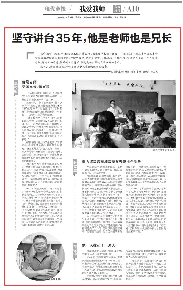 现代金报:坚守讲台35年,他是老师也是兄长