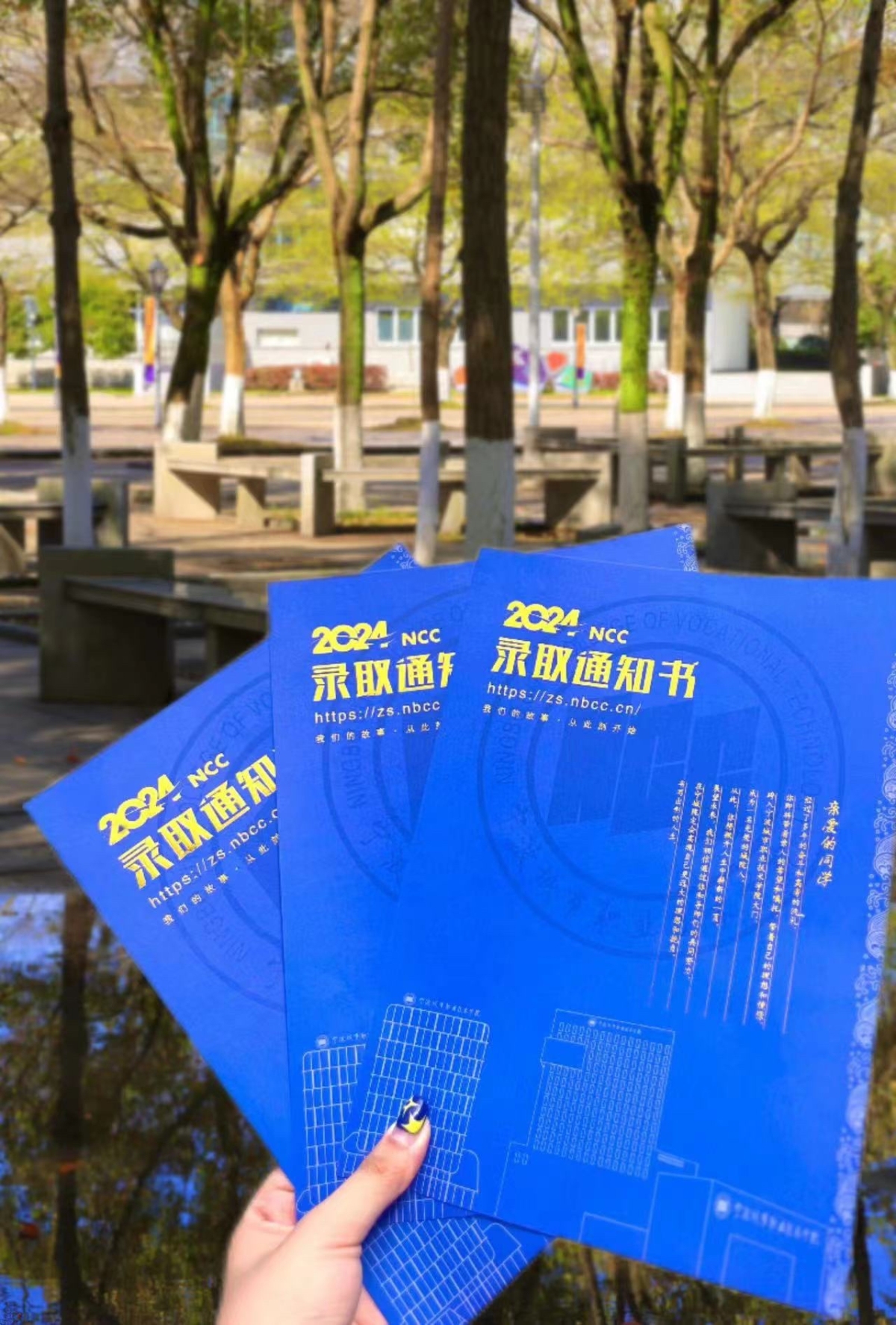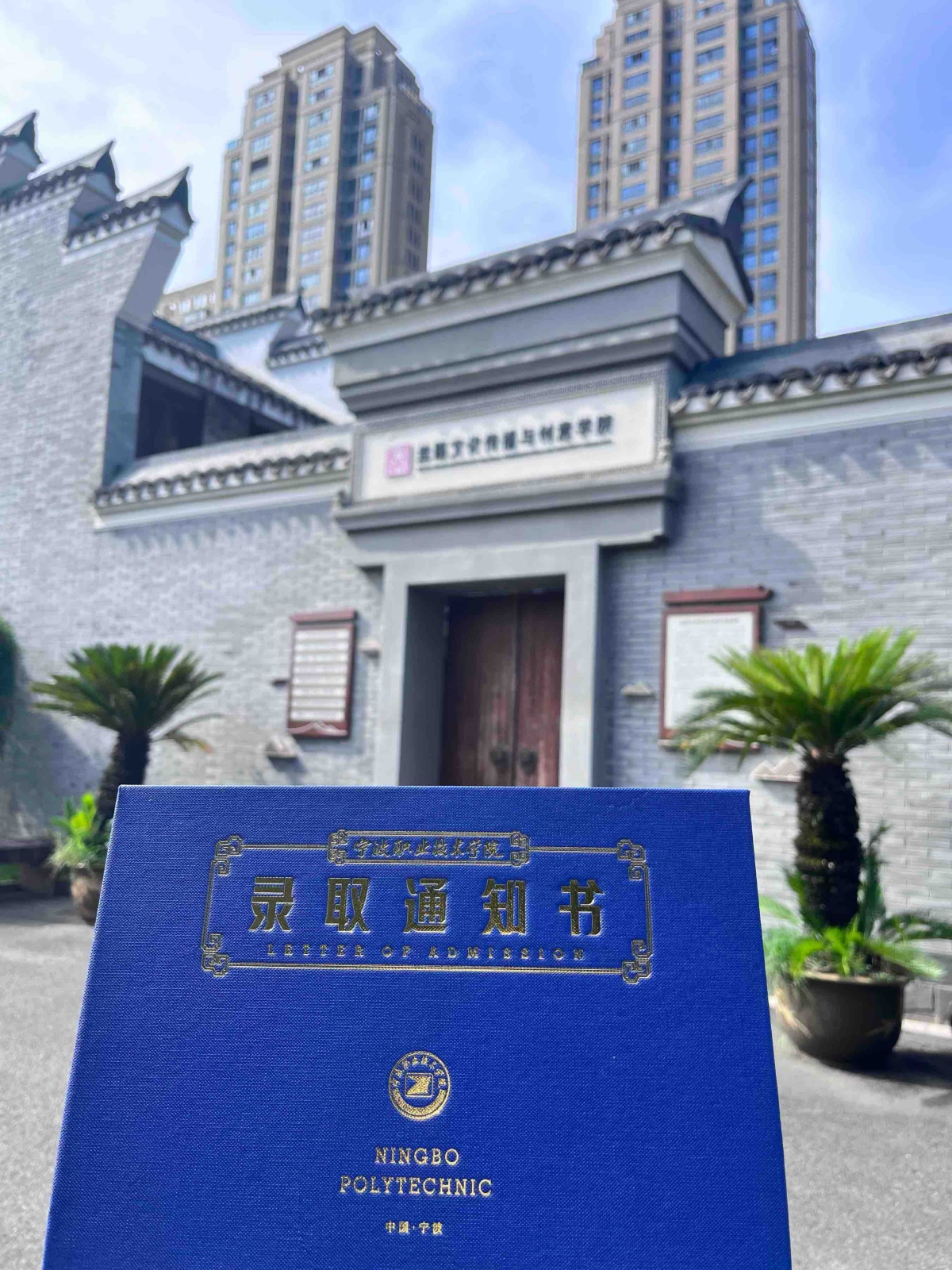 宁波职业技术学院2024年录取通知书整体色调为宁职蓝,封面刻有烫金的学校校名,整体设计采取古典风格,雅致明快的文字风格彰显出宁职人锐意进取、开拓进取的性格。