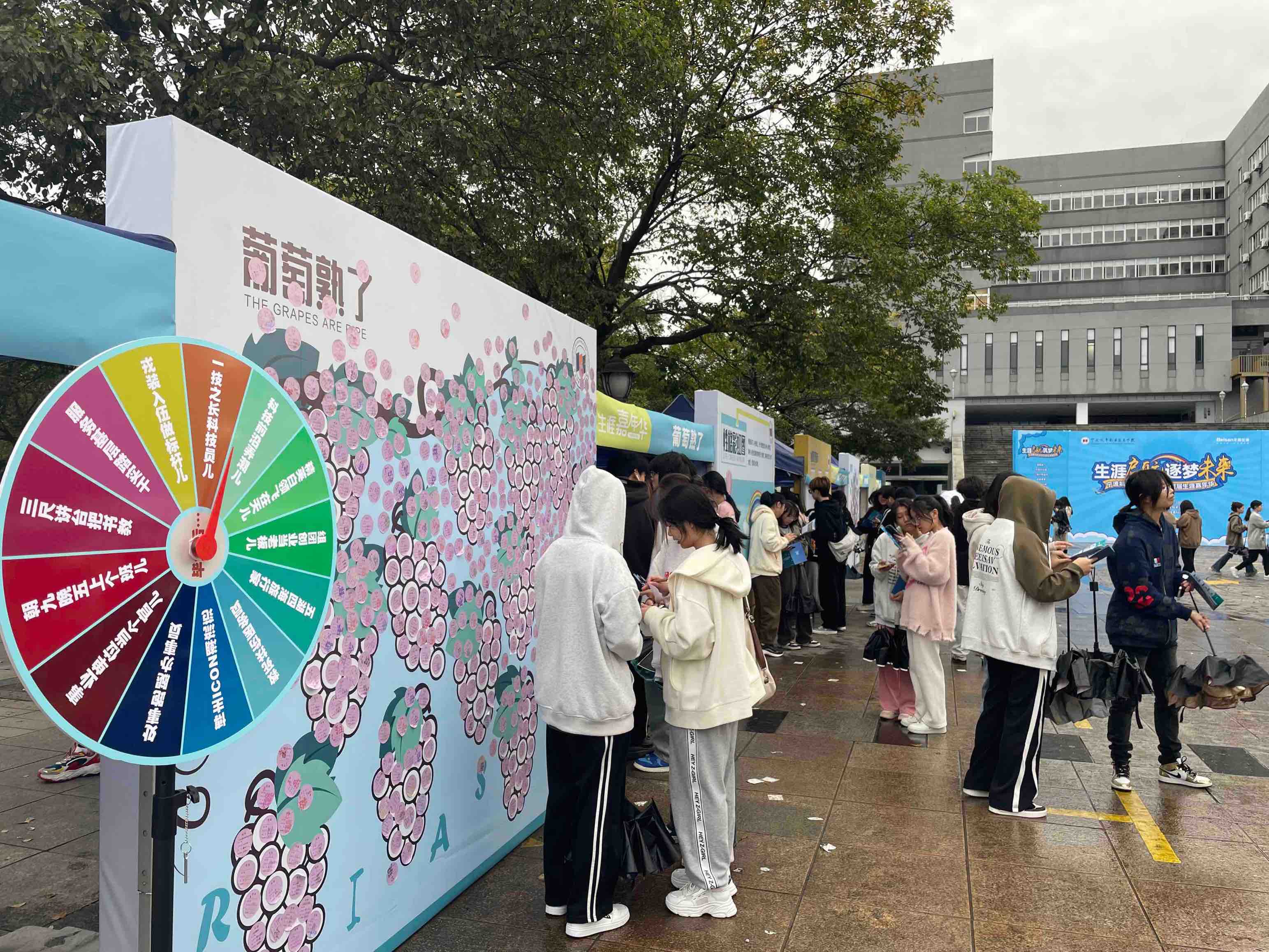 在“葡萄熟了”寻找职业兴趣,来“生涯彩虹图”探索职业风格,参与“职业飞行棋”掌握职业信息……11月8日,为期三天的kaiyun开云官方在线入口首届大学生职业生涯嘉年华活动启动,4000余名大一新生开启职业生涯自我探索的沉浸式体验。“同学们,扫码签到后开始活动,结束手机端就会生成个人生涯报告。”当天,宁波城市职院的阳光广场上就挤满了学生,每人手上都拿着一本《生涯嘉年华活动手册》,穿梭在不同的摊位前参与体验游戏“集章打卡”。集章活动。此次生涯嘉年华活动以“生涯启航·逐梦未来”为主题,共设置了“自我探索”“职业探索”“中场活动”“为梦想前进”4大区域模块,12个生涯体验游戏,学生通过游戏参与、动感体验等沉浸式活动,唤起自觉主动开展生涯规划的意识,在轻松愉悦的氛围下完成了自我和职业探索,激发自己对未来职业生涯的思考,从而明确生涯目标,完善生涯规划,不断提高生涯决策和行动能力。该校艺术学院2023级新生张鑫悦参与活动后表示:“蛮有趣的,通过这些游戏活动,我对自己的职业定位、未来规划有了初步认知,对学业规划有了明确目标。”新生在玩游戏过程中探索。虽然活动面向新生开展,但不少路过的大二学生也被活动吸引。“不