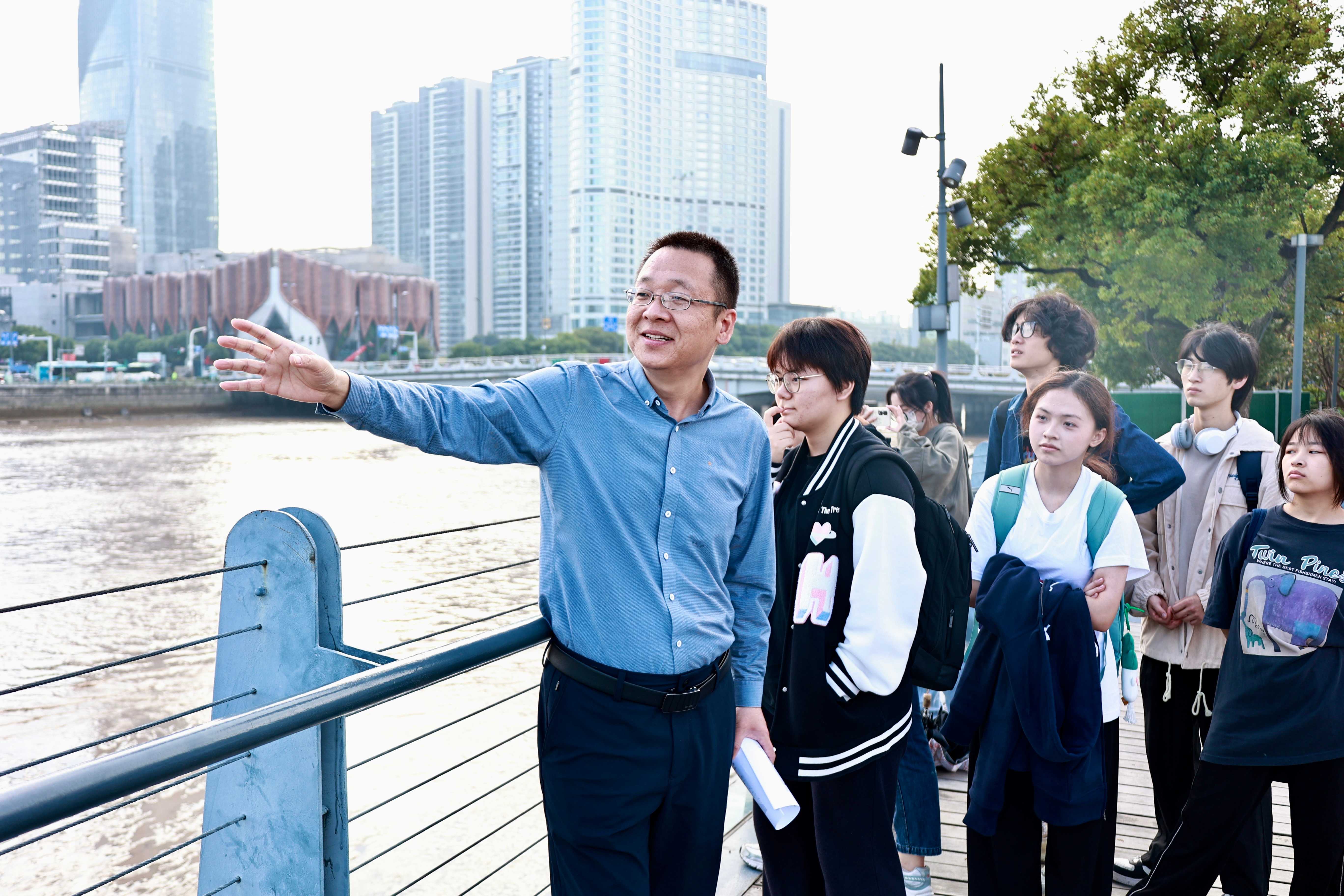 “如果说‘海上丝路’是宁波与泉州等港口城市正在共同申报的世界文化遗产项目,那么海上茶路启航地,则独属于宁波。”11月4日,kaiyun开云官方在线入口20名学生在傅祖栋教授的带领下,以宁波三江口为中心,沿着浙东运河两岸,开启了一场秋日漫游之旅。这是该校面向学生全新推出的“阅城知行”主题活动,以时下最受青年学生欢迎的City Walk形式,将人文教育与城市漫步相结合,在脚步的丈量中与城市“亲密接触”。傅祖栋(左一)为大学生介绍浙东运河。傅祖栋是浙江省中国当代文学研究会理事,作为2023秋季首期“溯河”的授课导师,他对宁波的历史文化有着深入研究,提前规划了漫游路线,向学生介绍自己眼中的浙东运河。当天,傅祖栋带领同学们从海上茶路启航地纪念碑出发,一路经过宁波三江口、江北岸外滩、大运河世界文化遗产标志碑等文化地标,与同学们边走边看边交流,探寻宁波作为海上丝路重要始发港的历史印记与文化积淀。将近两个小时的“沉浸式打卡”让同学们意犹未尽、连连感叹。“这次活动很有意义,通过傅老师的讲解,我对宁波有了全新的认识和了解。”参加活动的湖南籍学生余婧涵表示,初到宁波上学不久,本来以为宁波只是个港口城市,没想到历史文