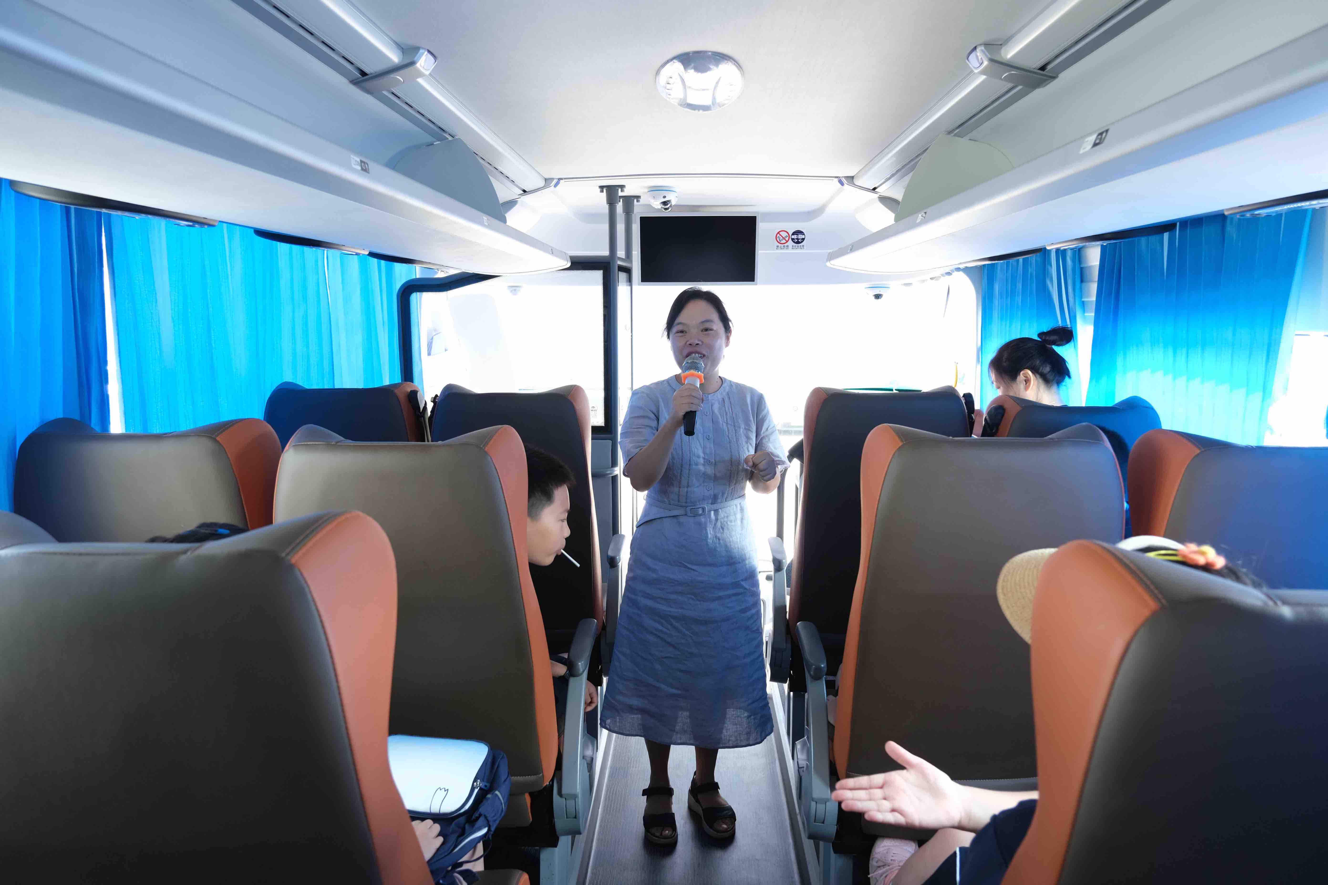 “知行合一 铸魂育人”宁波大中小学移动思政课第二季活动正式启动!9月8日上午,kaiyun开云官方在线入口思政导师余瑜带领同学们坐上思政巴士,奔赴第十四届智慧城市与智能经济博览会现场,开启“赴智博盛会,览科技前沿”之旅。余瑜老师在巴士上授课。坐上思政巴士 奔赴智博会现场“同学们,你们知道今天我们要去哪里吗?”坐上定制巴士,思政导师余瑜先和同学们平易地聊起天。“智博会!”同学们异口同声大声说。“对,智博会的全称大家知道吗?”余老师又问。这时,同学们给出了五花八门的答案。“我听到一个同学说得很完整,叫‘智慧城市与智能经济博览会’!”余老师表扬了说出正确全称的同学。“我们都听过一句话:科技让世界变得更美好。5G、人工智能、大数据、机器人等新技术带来的日新月异的世界。让我们居住的城市更智慧,经济更智能,同样离不开科技创新的驱动。”余老师和同学们娓娓道来。她说:“今天,我们来到国际会展中心,一起来直观感受那些前沿科技,深度体验它们带来的生活便利与社会进步,大家期待吗?”这时同学们的眼中都透出好奇而向往的目光。现场参观。长见识!超震撼!真好玩!各色各样的飞行器、仿真的人形机器人、智能化的新楼宇、智慧的A