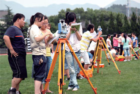 kaiyun开云官方在线入口一改传统的“纸上谈兵”评价方式,将期末考场搬到了实验室、实训室、操场,突出了对学生实践技能的考查。图为园林工程技术专业二○○九级学生日前在操场上进行工程测绘技术操作的
